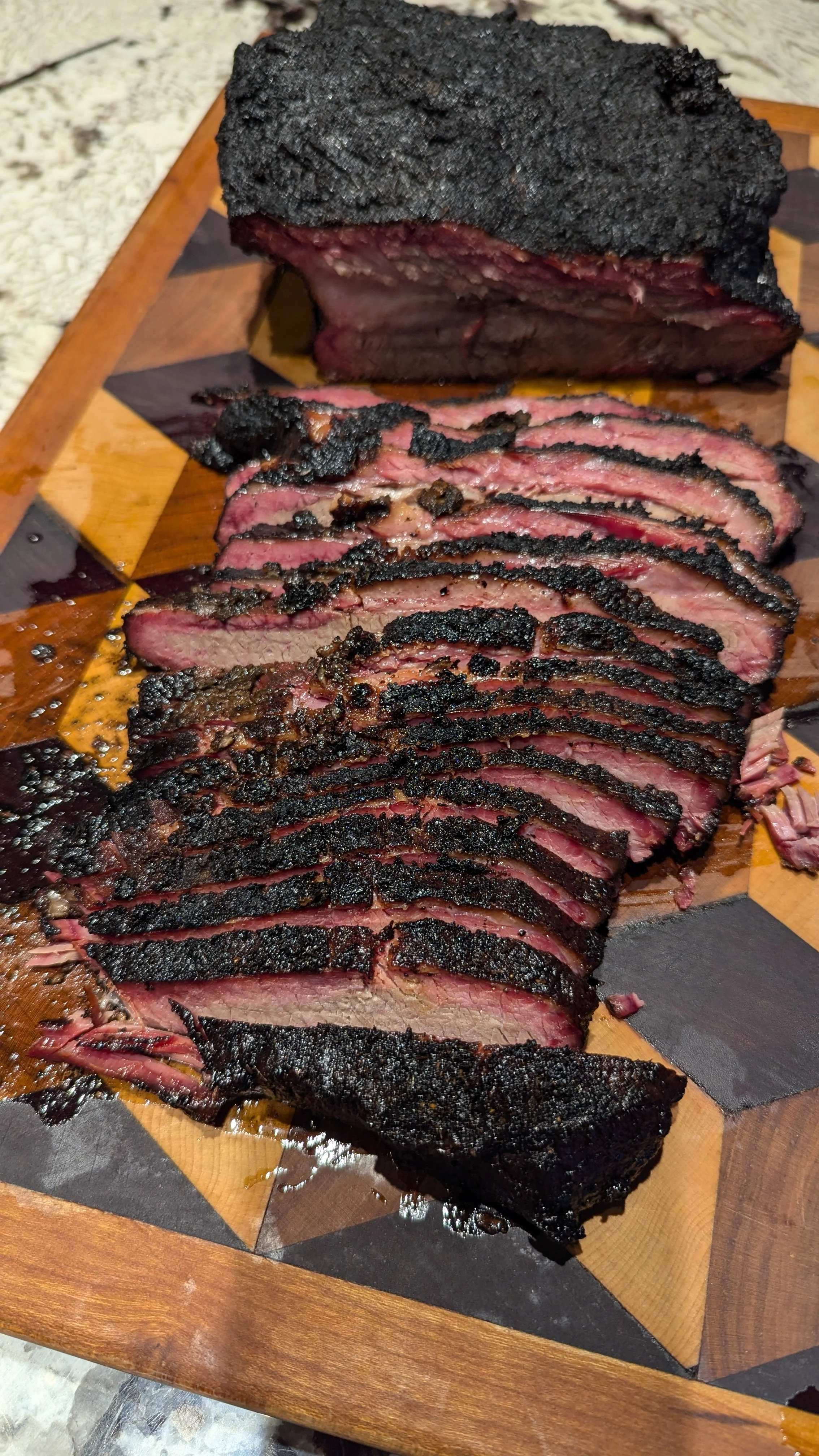 Slow smoked for 12+ hours over hickory, oak, and mesquite. Sold whole (flat) or by the pound.